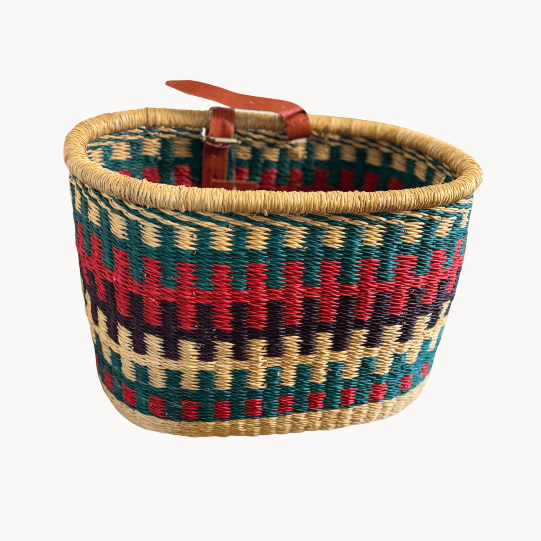 Elk van onze manden is uniek, met de hand gevlochten door getalenteerde vakmensen in Ghana. Gemaakt van stevige natuurvezels, gaan ze lang mee en voegen ze een vleugje stijl toe aan je fiets.
