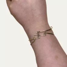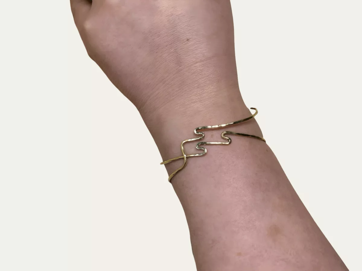 Deze handgemaakte armband combineert stijl, duurzaamheid en een krachtig verhaal. Ze zijn gemaakt van gerecycled messing – een mix van koper en zink – en hebben een warme, gouden gloed die elke outfit compleet maakt.